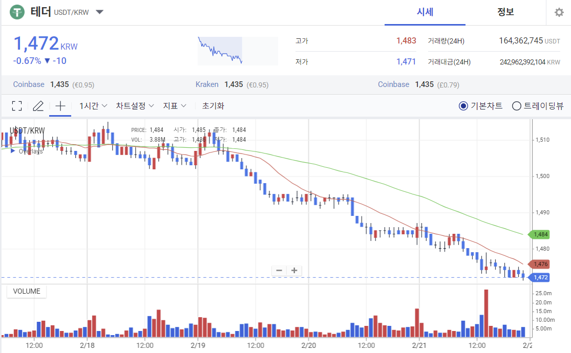✨ 업비트 테더 바로가기 ✨ RSI 정상 범위, MACD 베어리시 신호... 단기 안정 vs 하락 지속?여러분, 안녕하세요. Harmony & Prosperity 에서 차트 분석 전문가로 여러분과 함께합니다. 오늘은 업비트에서 제공된 테더(USDT/KRW) 1일봉 차트를 통해 중요한 시장 동향을 발견했습니다. 제공된 차트는 2025년 2월 17일부터 2월 21일까지의 하락 추세를 보여주며, 가격이 1,483 KRW에서 1,472 KRW로 조정된 패턴을 나타냅니다. 특히, RSI(상대강도지수)가 정상 범위(약 45)에 머물고 있으며, MACD(이동평균수렴확산지수)에서 베어리시 신호가 발생한 점이 주목할 만합니다. 이 신호들은 단기 안정 가능성을 시사하지만, 하락 지속 가능성도 고려해야 합니다. 여러분도 이..